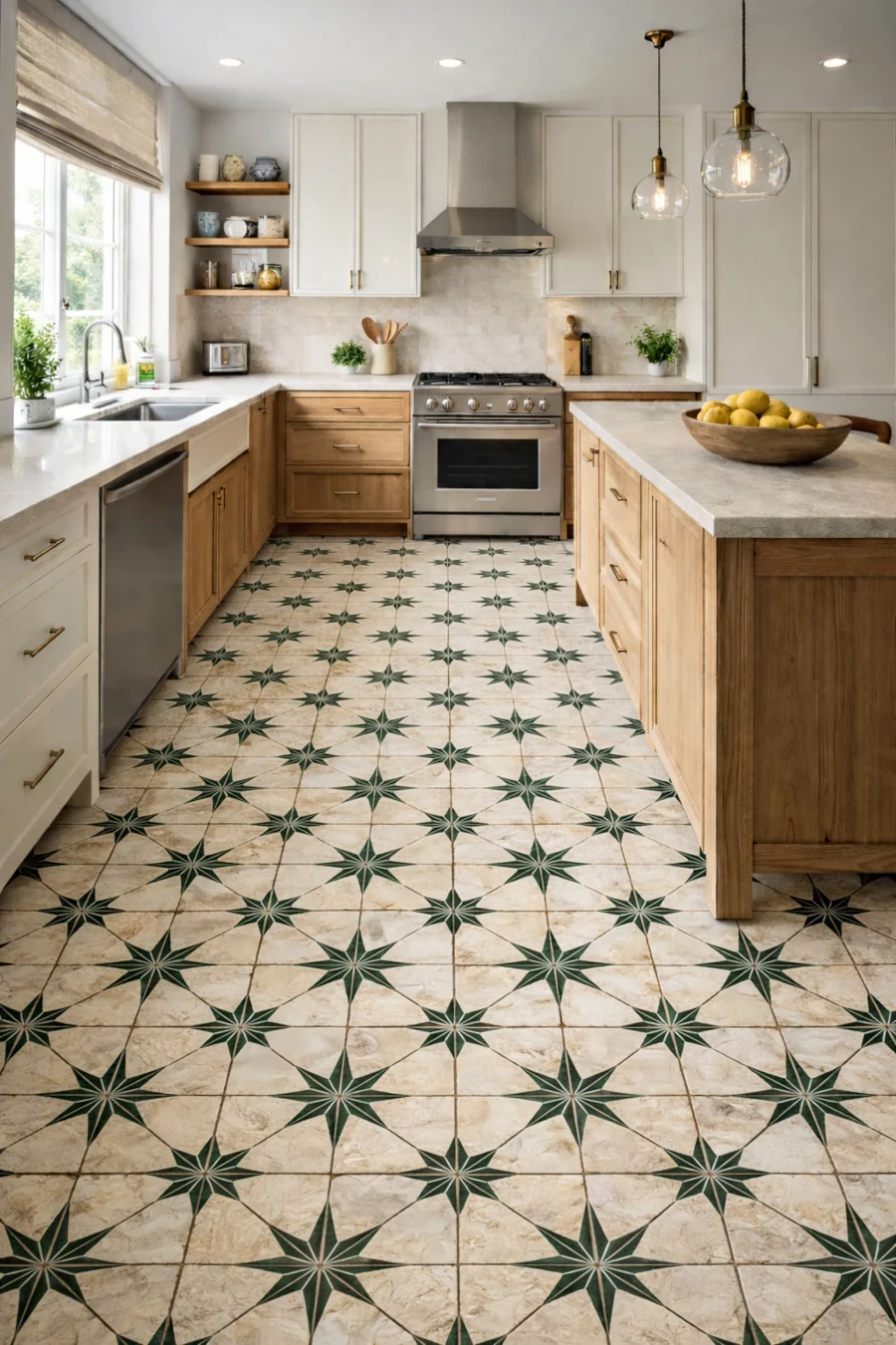 Płytki FS Starlight LT to nowoczesna odsłona popularnego modelu FS Star LT, dostępna w kompaktowym formacie 22,3x22,3 cm. Łączą styl vintage z artystycznym rzemiosłem, a ich zielona płaskorzeźba w kształcie gwiazdy tworzy fantazyjne wzory, przypominające rozbłyski iskier, nadając przestrzeni niepowtarzalny charakter. Płytki idealne do stosowania na podłogi oraz ściany. 40 spójnych wariantów jednego wzoru w identycznej stylistyce, gwarantuje harmonijną aranżację. Losowe pakowanie płytek pozwala osiągnąć naturalny, niepowtarzalny efekt.