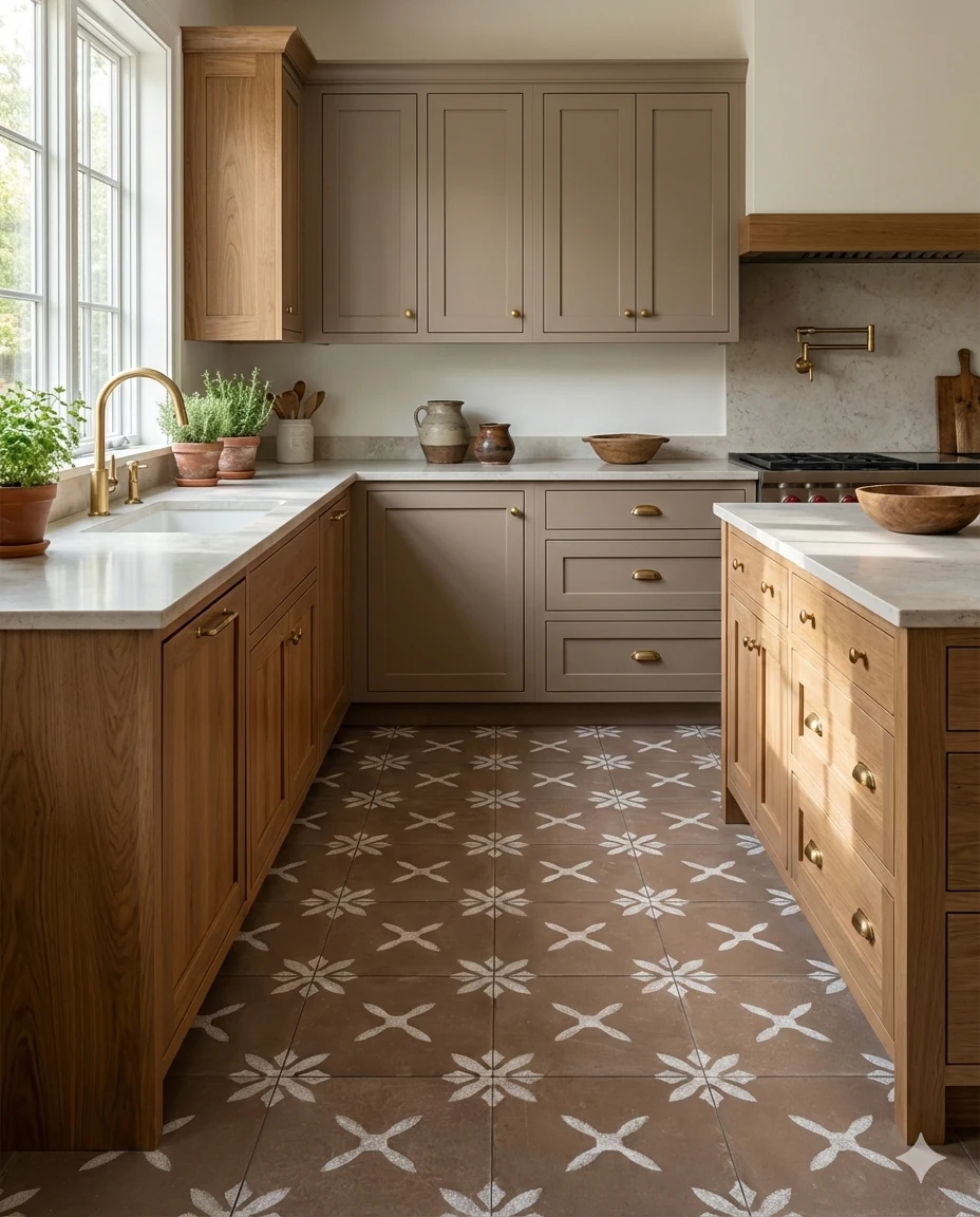 Matowe, postarzane płytki inspirowane gliną w kolorze brązowym z błyszczącym wzorem o wymiarach 22,3x22,3 cm. Kafelki posiadają antypoślizgową powierzchnię w klasie R10 i są przeznaczone do stosowania zarówno na podłodze, jak i na ścianie. Produkt dostępny w 40 spójnych wariantach jednego wzoru – wszystkie utrzymane w tej samej stylistyce i kolorystyce. Płytki pakowane są losowo, co pozwala uzyskać naturalny, niepowtarzalny efekt na powierzchni.
