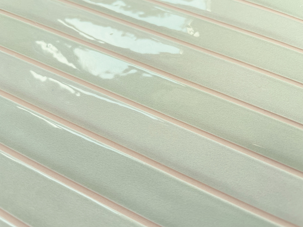 Błyszcząca powierzchnia w miętowych odcieniach o dużej wariacji tonalnej V4 wprowadza do wnętrza energię i świeżość. Każda płytka różni się tonacją, co sprawia, że kompozycja wygląda jak ręcznie układana. Światło odbija się od błyszczącej powierzchni, podkreślając fakturę i głębię koloru. To rozwiązanie, które pozwala stworzyć wnętrze pełne harmonii, a jednocześnie wyjątkowe i osobiste — takie, które odzwierciedla Twoje poczucie stylu.
