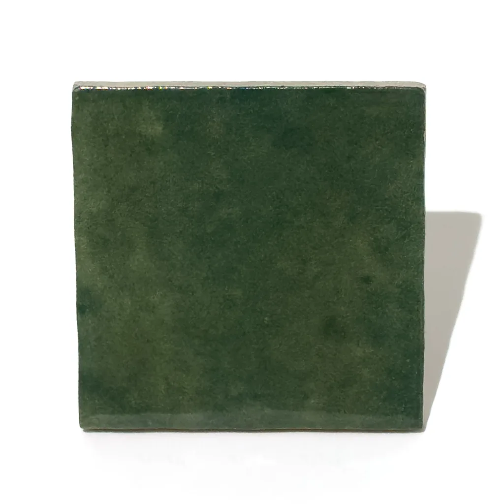 Inspiracja estetyką zellige widoczna jest w nieregularnej strukturze i ręcznym charakterze wykończenia, który ożywia przestrzeń i nadaje jej indywidualny ton. Zielona paleta dobrze współgra z drewnem, kamieniem i czarnymi akcentami, budując wnętrza o wysokiej kulturze wizualnej. Błyszczące płytki optycznie powiększają przestrzeń i wzmacniają światło, co docenią zarówno miłośnicy designu, jak i osoby szukające przytulnego efektu. To rozwiązanie, które łączy styl z funkcjonalnością i podkreśla prestiż aranżacji.
