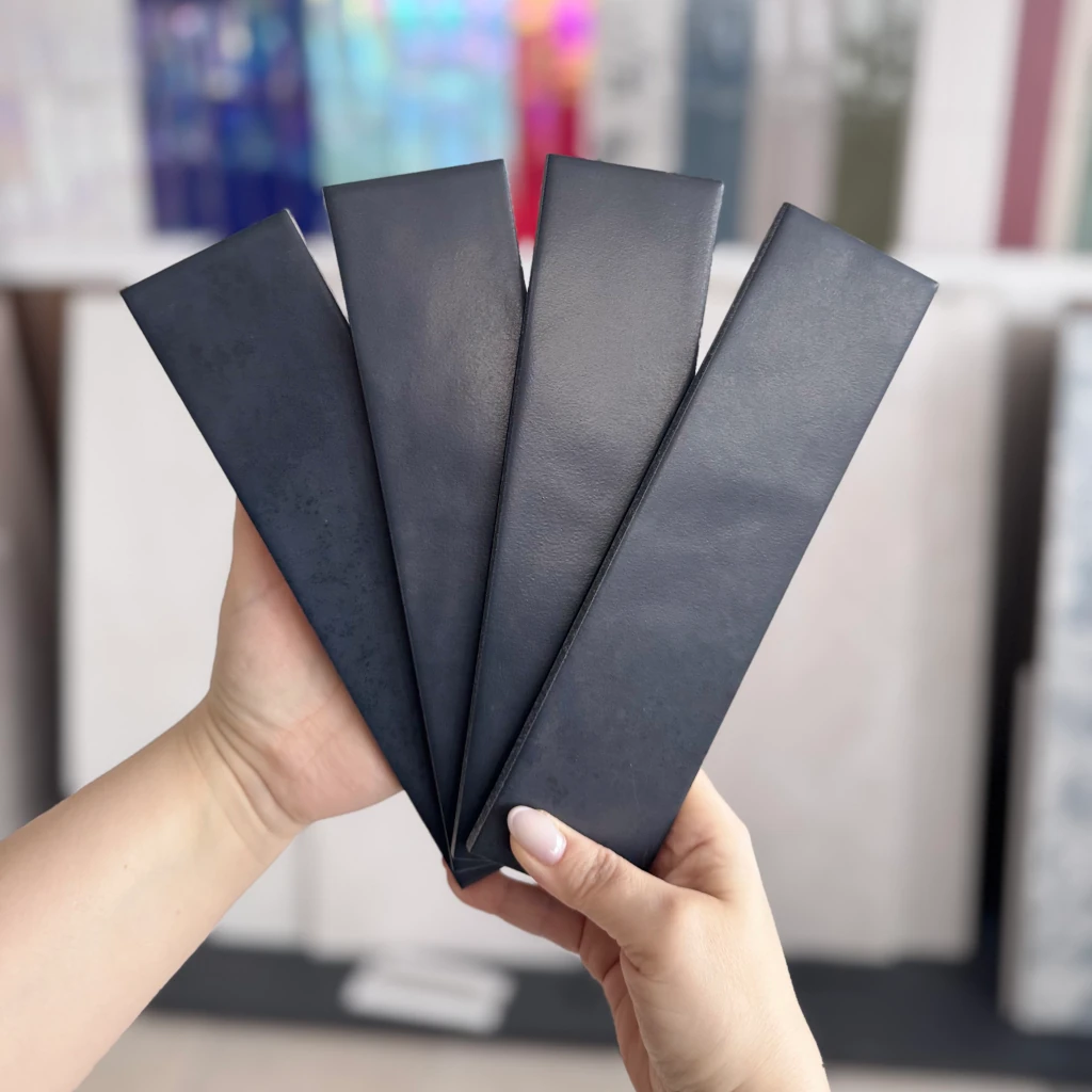 Kafelki typu cegiełki przeznaczone na ścianę tworzą estetyczną, wyważoną strukturę, która ociepla wnętrze i dodaje mu głębi. Satynowe wykończenie nadaje spokojny, elegancki połysk, a grubość 8.5 mm zapewnia stabilność oraz komfort montażu. Imitacja ręcznie formowanej powierzchni sprawia, że przestrzeń nabiera charakteru, porządkując aranżację i podkreślając kolor. To propozycja dla osób tworzących wnętrza, w których liczy się czytelny rytm, wyrazista faktura i dopracowany, ciemnoniebieski klimat.
