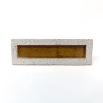 Produkt posiada brązowo-miodowy kolor w części szkliwionej, inspirowany szkłem i naturalnymi pigmentami, oraz białą, rustykalną bazę o chropowatej, nieregularnej strukturze. Wyprofilowane zagłębienie wypełnione szkliwem tworzy efekt trójwymiarowości (3D) i podkreśla dekoracyjny charakter płytki. Nakrapiane, lekko nieregularne szkliwo z delikatnymi mikrospękaniami, nadaje powierzchni autentyczny, ręcznie wykonany wygląd.