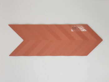 Płytki dekoracyjne, trójwymiarowe o wymiarach 15x38 cm. Kafle charakteryzują się efektem iluzji głębi, który przypomina plisowaną tkaninę i biegnie od góry do dołu. Dekory ceramiczne w odcieniu glinianym z wariacją tonalną V1 oraz matową powierzchnią imitującą kamień, przeznaczone są do montażu na ścianie.