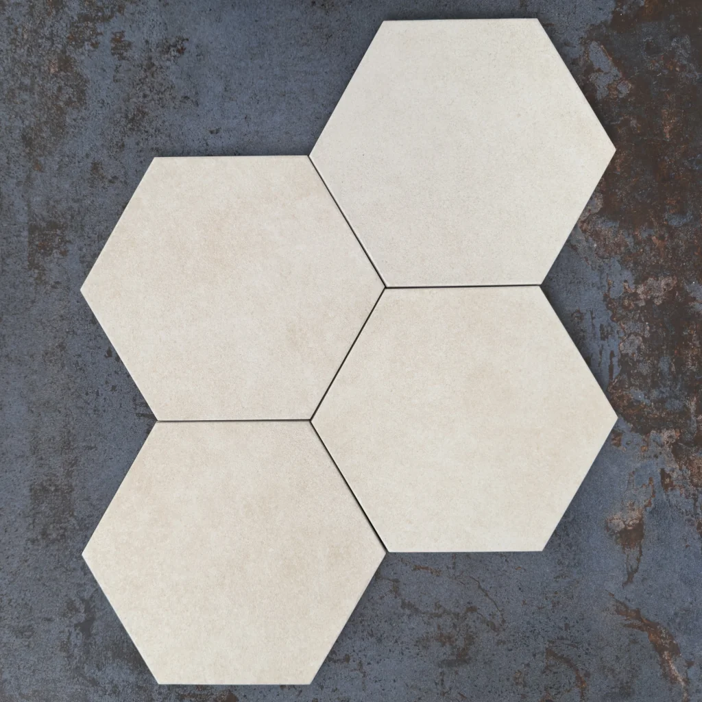 Heksagonalna płytka gresowa o wymiarach 25×21,6 cm doskonale sprawdzi się na ścianach i podłogach. Kafle ze strukturą kamienia, barwione w masie, z matową, antypoślizgową powierzchnią R10, dostępne w eleganckim, jasnoszarymszarym z odcieniami beżu kolorze, zapewnią stylowy wygląd każdemu wnętrzu. Idealnie komponują się z innymi heksagonalnymi dekorami z włoskiej kolekcji Terracreta.